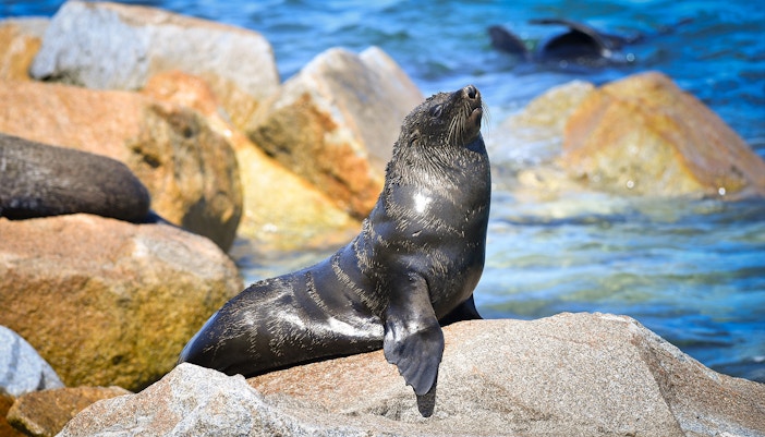 Diese schlanken, dunkelbraunen Robben halten sich an den Cathedral Rocks an der Westspitze von Rottnest auf, wo Sie sie oft beim Sonnenbaden oder beim spielerischen Sprung von den Felsen beobachten können. Sie sind kräftige Schwimmer und es ist eine Freude, ihnen zuzusehen, wie sie mühelos durch das türkisfarbene Wasser gleiten.