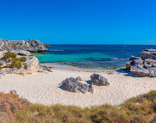 Rottnest Island è la fuga costiera per eccellenza dell'Australia Occidentale. Con oltre 60 spiagge, 20 baie e sentieri naturali panoramici, è perfetta per un'avventura di un'intera giornata a piedi o in bicicletta.