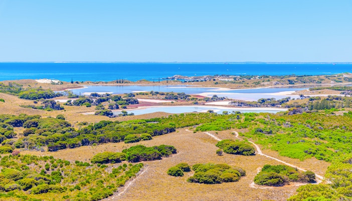 Com 38 metros de altura, o Farol Wadjemup é o ponto mais alto da Ilha Rottnest. Do topo, você terá uma vista deslumbrante dos lagos de sal, das dunas de areia e do azul infinito do Oceano Índico. Em dias claros, você pode até mesmo avistar o horizonte distante de Perth.